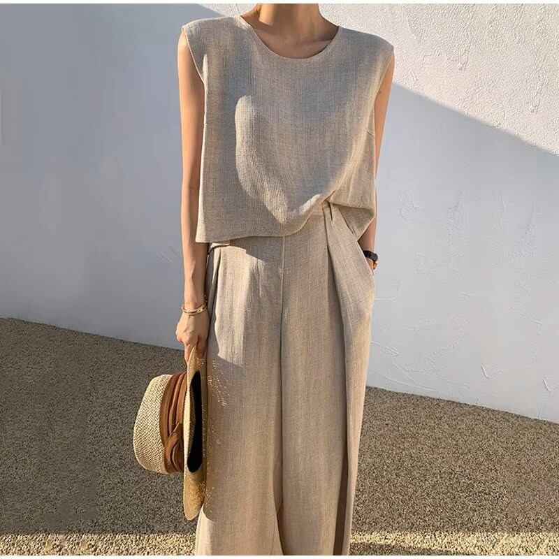 このコットンとリネンのノースリーブトップ + ロングパンツツーピースセットは、夏の必需品です。ぜひこの機会に手に入れて、素敵な夏のスタイルをお楽しみください!