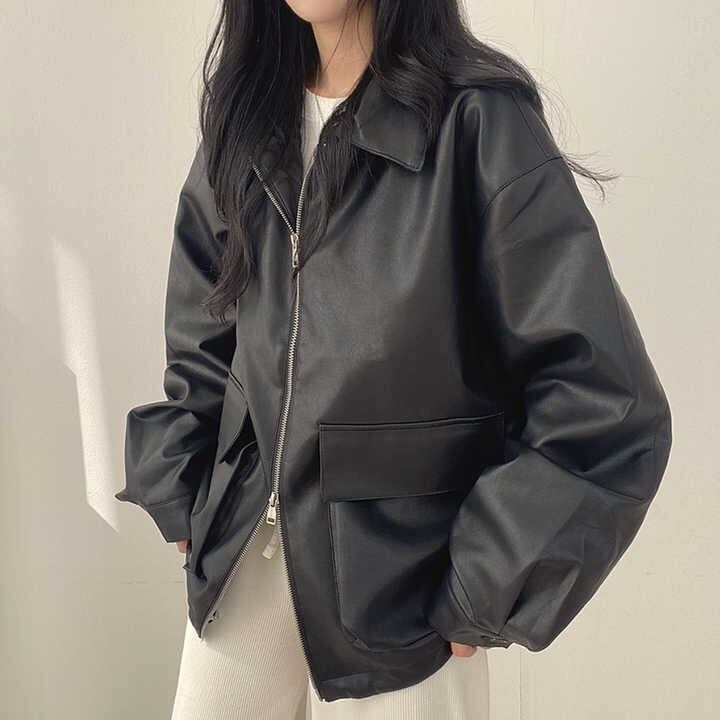 **「2025秋新作|レトロポロカラービッグポケット合皮レザージャケット|ゆったりシルエット・ルーズコート」が登場!** 目を引くポロカラーとビッグポケットが特徴のこのレザージャケットは、秋のコーディネートを一層華やかに彩ります。合皮素材で軽やかに着こなせるルーズシルエットが、リラックス感を演出しつつおしゃれを楽しめる一着です。
