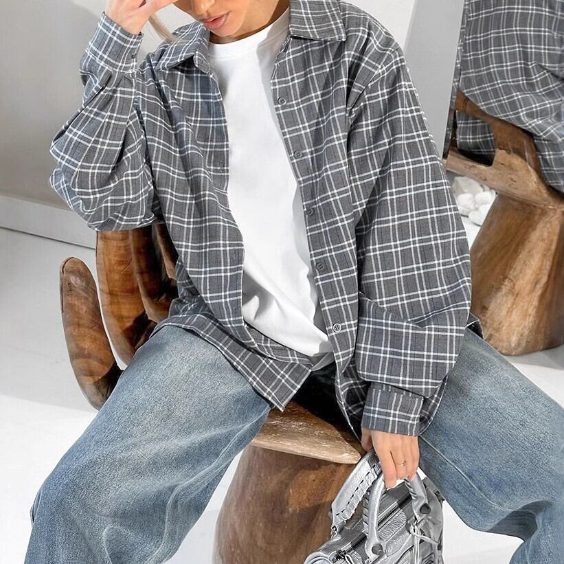 **「2025秋新作|ゆったりチェック柄シャツ|レイヤードに映えるオーバーサイズ長袖トップス」が登場!** グレーベースのチェック柄が特徴的なこのシャツは、トレンド感たっぷり。オーバーサイズのゆったりとしたシルエットが魅力で、1枚で羽織るのはもちろん、Tシャツとのレイヤードスタイルにもぴったりです。